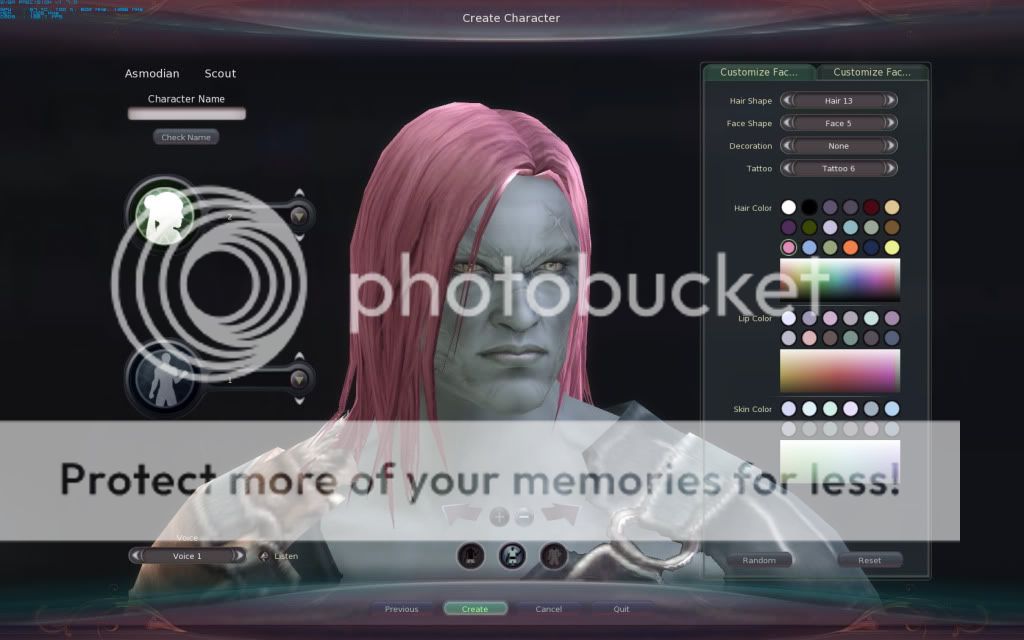 On the left side of the screen are the preset creations for both body type and head. Mostly you'll be using them as a base, but they also give an easy option for people who do not want to delve into the full customization features. Even still, there are a couple dozen hairstyles and face shapes per sex; as well as a number of decorations and tattoos to help further customize the basic look of your character.
